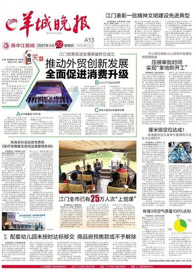 1957年10月1日创刊 2021年4月22日 星期四 辛丑年三月十一 手机报料:18520686633 江门 0750-3524738 中山 0760-88329981