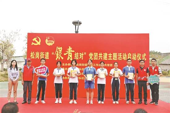 4月25日,宝安区松岗街道启动“银青结对”党团主题活动,松岗街道“银河志愿护卫队”党员志愿者、“星河志愿护卫队”团员青年、“小茶壶”义工队及辖区团员青年代表共计30余人参加。 老党员志愿者和团员青年一行人来到茅洲河毗邻党建党群服务中心参观茅洲河历史红色展厅。老党员志愿者结合自身经历和展厅陈设,向现场的团员青年们详细述说着茅洲河历史、赛龙舟、舞狮等文化,为现场团员青年上了一堂生动而难忘的党史团课。 据悉,松岗街道团工委打造的党史学习“银青结对”联盟,让青年党团员与老党员们一起学习、交流。针对高龄老党员出行不便、活动难联系等实际困难,松岗街道团工委引导青年党员、团员“银青结对”,动员辖区“青言青语轻骑兵”讲师团为老党员送上定制党课。 松岗街道团工委主要负责人表示,“银青结对”不仅可以帮助解决老党员们学习上的一些困难,通过老同志“点灯指路”,也可以让年轻人快速成长。 据悉,松岗街道现有80岁及以上老党员59人,辖区青年党团员与离退休老党员结对,开展上门送学、结对帮学。在老党员带领下,青年党团员积极参与到社区治理。 (文/图 陈云强 许盼)