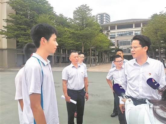 羊城晚报讯 记者曹月报道:顺德区委副书记、区长王勇,顺德区副区长蔡伟,顺德区教育局局长温联洲一行人6日来到顺德一中开展学生身心健康和中高考备考专项检查。 据悉,王勇在走访现场当场承诺,将把之前安排的“每年开展教师绩效考核激励”修改为“按学期开展教师绩效考核激励”,最快将于今年六月底就实现最新一次奖教。此外,王勇向广大教师提出了“一注意一承诺”,希望备战高考的一线教师注意休息,懂得劳逸结合;并承诺广大教师应有的待遇会严格落实“两相当”标准,提高有效激励。 “高考有没有信心?”“吃得好不好,工地施工有没有影响休息?”“二模情况怎么样?”王勇在走访过程中偶遇一位同学,细致地询问该同学学习生活情况,并寄语考生保持良好心态、稳定的学习进度,以平常心应对高考,争取在高考中取得优异成绩。 为了解该校学生身心健康工作开展情况,随后,王勇一行来到顺德一中心理辅导室。据了解,该校进行全员心育,并建设了双主体的心理团队,包括教师团队和学生朋辈团队。朋辈心理团队包括心理委员、宿舍心理联络员、班级心理小组、学生心理社团、生涯社团、学长学姐团等。朋辈心理教育模式以“心理健康教育”和“生涯教育”作为主题,以课堂微课、主题活动、社团活动、调研和访谈、真人图书馆等方式开展各种朋辈教育活动。 “我校三个年级配备三位专职心理教师,每两周安排一节心理课。本学期的课程中,高一加强学习指导,高二面向情绪调节,高三激发心理潜能。”该校专职心理教师梁悦介绍道。针对学生的心理咨询需求,该校还开设了线上、线下咨询平台,学生有任何心理上的困难,都可以找到心理老师,进行便捷、私密的咨询。本学期以来,学校线上线下就累计进行超过了170人次的心理辅导。 不仅学生需要心理辅导,参与备考的教师心理健康也需要关注。走访途中,王勇来到该校高三英语、历史教师办公室,慰问教师并交流。“希望能够进一步提升教师待遇。”在听取教师们自己的想法和意见后,王勇指出,顺德近年来高质量发展走在全国全省前列,最终是为了体现人的全面发展。教育是每个家庭的头等大事,学校为孩子步入社会打下最坚实的基础,因此,教师是“最神圣的职业”、肩负着“最光荣的使命”。顺德将进一步落实“教育强区”工作,把教育当作最大的民生、民心工程来打造,在加快教学基础设施改善等方面继续加大投入。同时,把之前安排的“每年开展教师绩效考核激励”修改为“按学期开展教师绩效考核激励”,最快将于今年六月底实现最新一次奖教。 据顺德一中校长谢大海介绍,该校在今年近四次大型统考中,高优率稳步提升,除去缺考等情况均能达到或超过90%,拉近了与石门中学和佛山一中的距离。此外,尖子生多点开花,尖子生群体形成,环比有进,同比攀升,力争在清北名校有突破,高优率站上92%。目前,已有9人入围清北强基计划初选(物理类7人、历史类2人),有望打开“清北大门”。