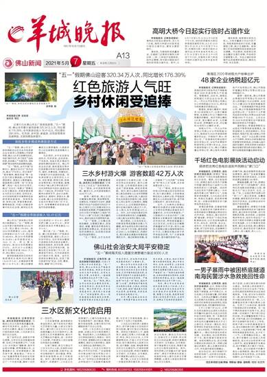 羊城晚报记者 景瑾瑾 通讯员 邹红 记者6日从佛山市文广旅体局获悉,“五一”期间,佛山全市累计接待游客320.34万人次,同比增长176.39%;全市旅游总收入18.41亿