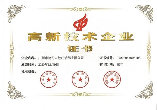 德伦口腔凭先进数字化技术获得高新技术企业荣誉 |