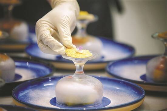 文/羊城晚报记者 施沛霖 图/受访者提供 烹饪的最高境界是对食材本味的彰显,尤其是讲究清鲜嫩滑、原汁原味的粤菜烹饪,对食材的选择更是精益求精。 日前,数十位来自广州餐饮界的总厨、掌门人及美食家们齐集广州跃·Yuè现代粤菜料理,探讨猪肉这一看似寻常的食材背后的新“煮”义。中国烹饪大师樊志源发挥创意,现场创作了四道色香味俱全的猪肉佳肴,开始了一段欧洲爱尔兰猪肉与广州美食的灵感碰撞之旅。 猪肉背后的人文故事 成就粤菜进化之旅 食,因味而美,食也因背后的历史、人文而有趣。 在这场 “传承·创新,西食东风意”欧洲猪肉品鉴会广州站论坛上,广州著名美食家、广东省食文化研究会会长庄臣从几道创新粤菜猪肉菜肴出发,沿味觉线索,寻时间脉络,与众人一起重温了粤菜进化之旅。 吃猪肉的历史在中国由来已久。《周礼·天官冢宰》记载,西周时便出现“炮豚”,“炮豚”即烤猪,属于“珍用八物”之一。1983年发掘出土的西汉南越王墓,发现的铜烤炉铸有乳猪的实物形态,是已知最早的烤乳猪形象,可以推断早在南越国时期或更早,南越宫廷中已有烤乳猪的菜肴。2000多年来,烤乳猪的习俗在广州一直保留下来,成为一道家喻户晓的名菜。 时至今日,在粤菜中猪肉菜肴多姿多彩,不同种类、产地的猪肉更是主妇们菜篮子里的主角。猪肉菜式的创新也成为粤菜厨师们的拿手好戏。 主厨现场飙技 欧洲猪肉成食客青睐新食材 随着近年广州餐饮水平的不断提高,来自异域、外地的各种食材云集广州,欧洲爱尔兰猪肉、西班牙伊比利亚猪肉等欧洲猪肉是近年广受食客青睐的新食材。 在厨艺表演环节里,樊志源大厨与广交会威斯汀酒店中餐副主厨马如鉴师徒联手,选用欧洲爱尔兰猪五花肉及猪梅肉,共同完成了四道猪肉菜品,在传统烹饪理念的基础上探索、尝试,制作出令人耳目一新的新粤菜。 第一道是现代风格的咕噜冰肉配脆芝士。继承了传统咕噜肉的酸甜味型,樊师傅制作的咕噜肉在上菜前先装入了冰镇玻璃杯中,令其表面降温,口感冰凉,细嚼内馅温热,富有内涵。 第二道花椒灯影风干肉,则借鉴了灯影牛肉的制作方法,薄如蝶翼,椒麻爽口,脆而不硬。 除了这两道新潮创新菜品,樊师傅更炮制了黑叉烧与老菜脯鸡子蒸手剁肉饼,这两道是地道的传统粤味,黑叉烧入口即化,配合酥炸的大白菜和小青柠,味觉更加丰富。老菜脯鸡子蒸手剁肉饼好味的秘诀在于猪肉部位的选择和肥瘦配比,以及“手剁”的特别味道。这道菜咸鲜韵长,令人回忆起温暖的家常美味。 据欧洲猪肉品鉴会广州站主办方欧盟委员会和爱尔兰食品局介绍,欧盟如今已是世界主要的猪肉生产中心,且成为全球最大的猪肉净出口地区。2019年,价值100亿欧元的473万吨猪肉,从欧盟地区出口到了全世界,中国、日本和韩国占据了欧盟猪肉出口总量的60%以上。 据樊志源大厨介绍,欧洲爱尔兰猪以本地谷物饲养六个月而成,具肉质细嫩、瘦而不柴的特点,这种猪肉特别适合与现代粤菜结合,创作有新意的菜肴。
