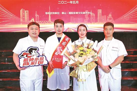 获奖的男护士与同事合影 |