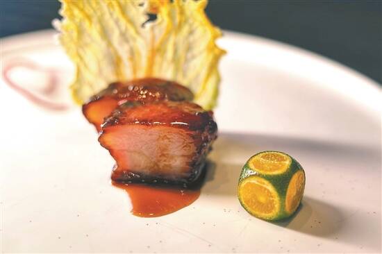 据樊志源大厨介绍,欧洲爱尔兰猪以本地谷物饲养六个月而成,具肉质细嫩、瘦而不柴的特点,这种猪肉特别适合与现代粤菜结合,创作有新意的菜肴。