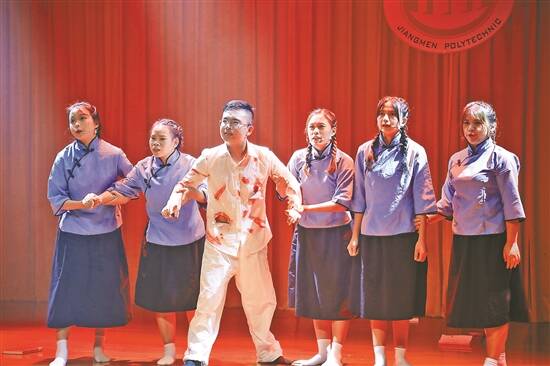文/图 羊城晚报记者 陈卓栋 通讯员 詹雨鑫 谭金杏 谭耀广 李少石看着脚下自己吐的一摊血,突然伸出右手,把被皮鞭抽得稀巴烂的衣服撕下来,用手指蘸着吐出来的血,在撕下来的布上写下:“丹心已共河山碎,大义长争日月光。不作寻常床箦死,英雄含笑上刑场……”这是红色话剧《大义长争》中的一幕,该话剧以祖籍江门潮连的革命先辈李少石为原型,表现李少石崇高的革命情怀、不屈不挠的革命精神和对革命必胜的信心。 记者近日从江门职业技术学院了解到,作为该话剧的创作单位,位于潮连的该学院深挖李少石红色文化内涵,打造广大师生喜闻乐见的特色项目,让英雄事迹成为“活教材”,推动党史学习教育入脑入心。 红色话剧演绎爱国精神 据介绍,祖籍潮连富冈的李少石于1926年加入中国共产党。他一生忠于革命事业,立下了汗马功劳。1934年,李少石因叛徒告密,不幸被捕入狱。面对敌人严刑拷打,他坚贞不屈。获营救出狱后,他转移到香港继续从事革命工作,随后被调往重庆。1945年10月8日傍晚,李少石在重庆突遭国民党士兵枪击,因伤势过重抢救无效,不幸牺牲,时年39岁。当年10月12日,毛泽东亲自题词:“李少石同志是个好共产党员,不幸遇难,永志哀思。” 江门职业技术学院相关负责人介绍,该学院以李少石优秀革命事迹为主要内容,创作红色话剧《大义长争》,并列入学校党史学习教育“十项系列活动”之中。该剧由学校老师担任编剧、导演,学生担任主演。 作为该剧编导,江门职业技术学院黄伟亮透露,为了编好这部话剧,前后花了一年的时间完成资料搜集,之后反复修改了八稿,力求演绎出李少石崇高的革命情怀、不屈不挠的革命精神和革命必胜的坚强信念。 该学院相关负责人表示,希望通过话剧巡演,传播红色文化,切实增强学校党员干部、全体师生的文化自信,激发爱党、爱国、爱人民的巨大热情。 红色家书赓续精神血脉 记者还了解到,该学院以本土红色资源为切入点,成立李少石红色文化研传中心,进一步挖掘、开发李少石红色文化品牌。中心通过系统研究,推出一系列活动。其中包括“品读红色家书”广播节目,作为该校党史学习教育“十项系列活动”重要内容之一。 “品读红色家书,牢记初心使命。大家好,我是……”这是江门职业技术学院“品读红色家书”广播节目的开场白。节目播出之后,在全校师生中引发热烈反响。参与节目录制的该校学生李晓祺说:“当我细细品读那一封封先烈们留下的家书、走进他们的精神世界的时候,我发现,他们也是普通人,也是芸芸众生中再普通不过的一分子。他们的肩膀并不宽厚,但他们以汹涌的爱国情怀和矢志不渝的革命信仰,奋力担起复兴中华之大任。他们永远是我学习的榜样。” 负责该节目策划和指导的黄伟亮说,红色家书是老一辈革命家和革命烈士留下的精神财富,也是开展党史学习教育的好教材。品读红色家书,传播红色精神,就是赓续共产党人精神血脉的具体行动。 据悉,江门职业技术学院还为潮连街道办事处策划建设李少石事迹展览馆,并全程参与展览馆的概念设计、文案撰写、讲解培训等工作。李少石事迹展览馆目前已被列入江门开展革命传统教育现场教学点推荐名单之中,广受各界观众好评。 该校相关负责人表示,下一步,江门职业技术学院将依托李少石红色文化研传中心,持续策划系列红色活动,通过话剧巡演、诗歌朗诵、书法展示、故事汇演等形式更好地传承李少石红色文化。