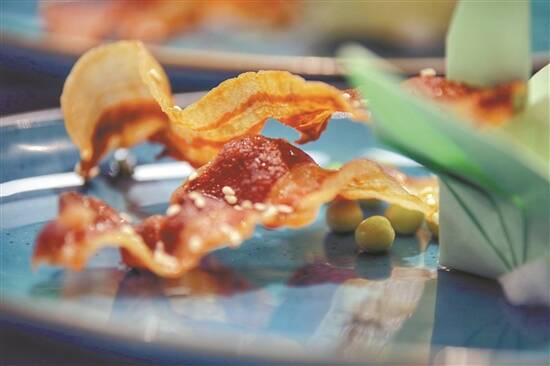 据樊志源大厨介绍,欧洲爱尔兰猪以本地谷物饲养六个月而成,具肉质细嫩、瘦而不柴的特点,这种猪肉特别适合与现代粤菜结合,创作有新意的菜肴。
