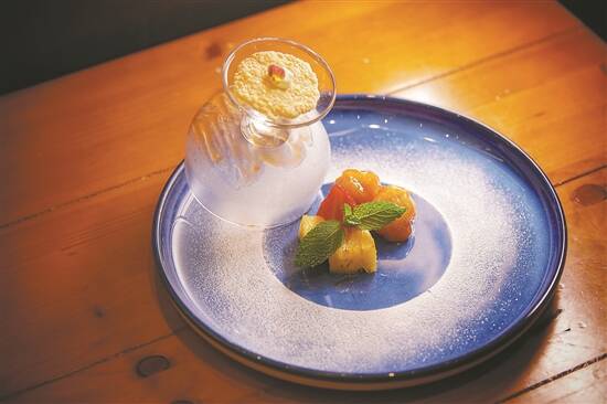 除了这两道新潮创新菜品,樊师傅更炮制了黑叉烧与老菜脯鸡子蒸手剁肉饼,这两道是地道的传统粤味,黑叉烧入口即化,配合酥炸的大白菜和小青柠,味觉更加丰富。老菜脯鸡子蒸手剁肉饼好味的秘诀在于猪肉部位的选择和肥瘦配比,以及“手剁”的特别味道。这道菜咸鲜韵长,令人回忆起温暖的家常美味。