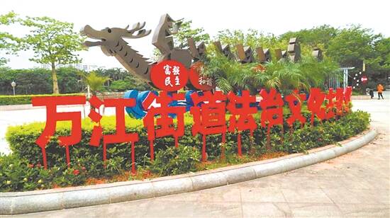 羊城晚报 记者文聪摄影报道:近日,广东省司法厅、广东省文化和旅游厅、广东省普法办联合通报,公布了2020年省级“法治文化主题公园”评选结果,东莞市共有两个公园入选,分别为万江街道法治文化主题公园和茶山宪法主题公园。 学习法律知识的“新课堂” 万江街道法治文化主题公园在依托万江渔歌广场的基础上规划建成,紧邻东江,绿树成荫。公园设计紧紧围绕社会主义核心价值体系和社会主义法治理念,以“法治、平安、和谐”为主题,在不影响既有空间布局和园林小品的前提下,巧妙添加和注入了大量法治元素。 13日上午,记者来到万江街道法治文化主题公园。在公园正入口处,红色字体的公园标识和印有社会主义核心价值观的龙舟造型十分醒目,既突出了万江传统水乡风俗风情,又兼具了法治文化特色。公园内设有法治文化主题标识、LED法治宣传屏、法治文化长廊、法治宣传栏、法治文化景观、公共法律服务标识指引等内容,通过富有美感和具有岭南水乡特色的雕塑、展示、装饰等艺术视觉手法,把法治文化元素与原有的环境绿化、设施等相融合,分布在公园的每一个角落,并且根据每个时期的宣传重点及时更新宣传内容,法治文化氛围浓厚。 同时,该公园内还设有法治谜语、法律常识问答、法治游戏翻牌板等法治文化游戏设施,市民做完题目,翻转牌板或来到游戏格的背面,就可以找到答案,以边玩边学边悟的体验式娱乐休闲方式增强学法趣味性、调动学法积极性,成为周边市民学习法律知识的“新课堂”。 据介绍,法治主题公园的建设,是万江街道贯彻落实“七五”普法规划的一项重要举措,也是万江法治建设的一大亮点。该公园建成以来,万江司法分局及其他普法责任部门借力“6·26国际禁毒日”“12·4国家宪法日”等重要节点,定期在公园举办专题普法活动,LED法治宣传屏定时播放法治公益作品,以多种形式生动传播“学法、懂法、守法、崇法”的法治理念,大力宣传宪法知识、扫黑除恶、禁毒、营造法治营商环境、公共法律服务、人民调解等内容,确保普法宣传与万江街道党工委、办事处的中心工作同频共振,与群众学习生活紧密相连,共同助力社会主义法治文化建设。 推动法治文化公园发挥实效 茶山宪法主题公园位于茶山镇政府对面,是将原有的休闲广场升级改造而成,规划建设了以“宪法”为核心,以“遵宪、守宪、用宪、护宪”为内容的宪法主题公园。 宪法主题公园占地面积约1.2万平方米,设置了“宪法历史文化柱、宪法宣誓誓词景墙、宪法文化长卷、宪法文化长廊、宪法文化互动区、社会主义核心价值观”等主题区,涵盖雕塑、景墙、长廊、廊架、彩画、电子宣传屏幕等多个类别的景观,将宪法知识、宪法精神、法律法规、社会主义核心价值观等内容,通过环境艺术和雕塑艺术的手段融入于公园景观之中,实现文化性、娱乐性、知识性、教育性于一体。 茶山镇有关负责人表示:“为了更好发挥法治文化公园作用,打造法治文化宣传主阵地,茶山突出宪法引领,加大以宪法为核心的社会主义法律体系宣传,形成全民尊法学法守法用法良好氛围;坚持共建共享,各有关单位以落实‘谁执法谁普法’普法责任制为抓手,共同推动法治文化公园发挥实效。此外,茶山普法主管部门加强统筹协调,建立健全宣传长效机制,切实发挥法治宣传主阵地的作用,营造良好法治氛围和发展环境。”