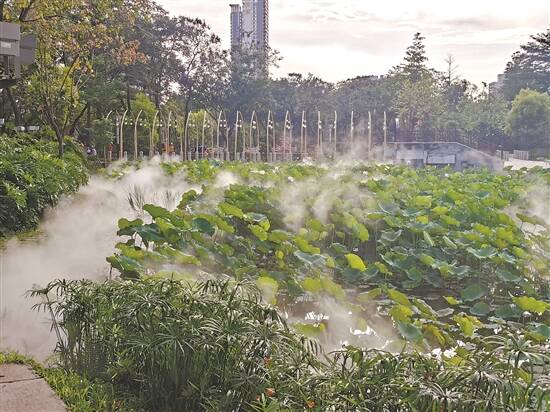 羊城晚报讯 记者景瑾瑾、通讯员邝泓根摄影报道:往年吸引广佛大量市民游客观赏、拍摄的绝美荷塘景色又来啦!记者从禅城区城市管理和综合执法局获悉,亚洲艺术公园(以下简称“亚艺公园”)禅荷花岛雾景调试工作已将近尾声,预计5月15日正式全面运行,届时市民可前往禅荷花岛观赏。 值得一提的是,今年的雾景每日开启时长相比往年大幅增加:每天从5时30分至10时30分;以及15时至22时30分,共分两个时段开启,并以每开启40分钟、暂停20分钟的周期运行,且周六日照常运行。 据了解,禅城区城管部门对喷雾系统进行了升级,雾化喷头的总数增加到了1880个,雾化装置增设到6处。雾化装置先对水进行臭氧杀菌及过滤纯化,随后对处理水施加极高压力,通过管道输送到喷头处,喷头再通过物理作用将水流裂解成直径仅有10-20微米的微小水珠,进而形成雾化效果。通过对喷头进行合理的空间配布、调整雾化装置的运行参数,相比以往水雾覆盖更均匀、覆盖面积更广,营造出“仙雾缭绕,菡萏含红”的景观效果。 禅城城管相关负责人介绍,该套系统能耗低、噪音小,而且系统运作时无需人工干预,必要时可远程控制,且在遇雷、雨天气时自动暂停。另一方面,自亚洲艺术公园和文华公园实现联通后,作为“城市会客厅”的重要组成部分,“亚艺荷韵”这一禅城名片的吸引效应将会更加显著,并赋予禅城更多的文化意蕴和内涵。