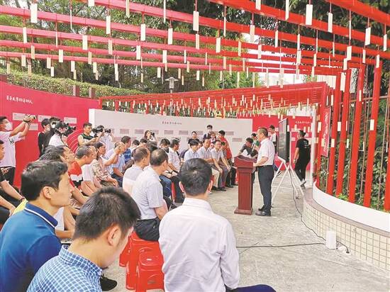 揭幕式后平湖街道党工委书记王舒在大榕树下讲起党课 |