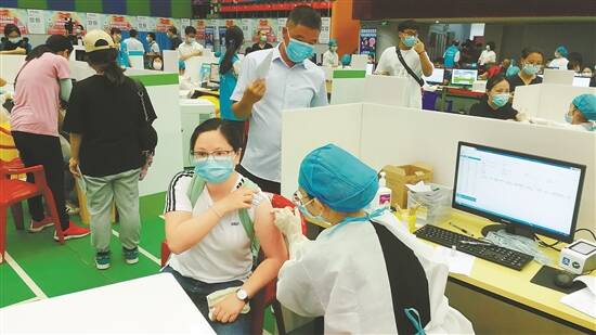 羊城晚报讯 记者彭纪宁,通讯员谭耀广、温力生摄影报道:13日, 设置在江门市体育馆内的江门新冠疫苗大型临时接种点正式启用,将为江门中心城区蓬江区的环市街、白沙街辖区内居民和企业单位员工开展新冠疫苗接种。 当天,记者现场看到,临时接种点设置有健康咨询、登记、初筛、等候、接种、留观等7个区域,各区域间有明显的区域划分和醒目标识,方便广大群众自行前往既定区域完成接种流程。辅助人员各就各位,前来接种的市民有序排队,进行健康咨询、登记、初筛、等候、接种。每个接种群众只需要20分钟便可以完成新冠疫苗接种,在原本的体育馆观众席改设的留观区坐半小时,没有问题后便可离场。 据悉,为方便广大群众周末接种,江门市卫健委把接种疫苗时间设置为每周二至周日,每天按照医院的正常工作时间,安排接种点医护人员周一休息。团体接种可通过电话联系当地的街道办咨询预约。 据了解, 江门本次正式开放的新冠疫苗大型临时接种点设立45个接种台,分别从江门市中心医院、五邑中医院、人民医院、妇幼保健院、第二人民医院等抽调配备医务人员127名、66名辅助人员。按照每个接种台每天接种200人的接种能力,整个接种点每天可满足单日近1万人的接种量。