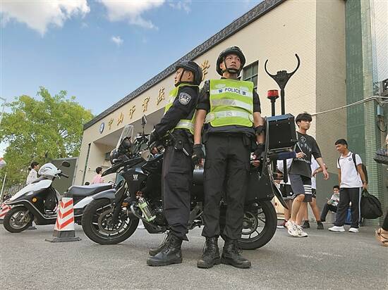 羊城晚报讯 记者林翎、通讯员何加杰摄影报道:记者5月25日从中山市公安局获悉,近期,中山公安特警支队以“我为群众办实事”实践活动为抓手,在做好社会面巡逻防控的同时,深入开展“护校安园”专项行动,在东区、西区17所中小学、幼儿园建立了护学岗,实现校园门口及周边在上学、放学时段“见警察、见警车、见警灯”,全力维护校园安全,切实为学生筑牢安全网。 根据学校放学时间的差异,特警支队采取“高峰站点、低峰巡线”的巡防模式,在学生早晨上学、下午放学以及晚自习放学等时间段,组织14个巡逻组,采用车巡、步巡和定点站岗执勤相结合的方式,准时到林余宝珠幼儿园、中山市第一中学初中、高中部、中山市特殊学校、中山市儿童福利附属特殊教育幼儿园、中山市特殊幼儿园、中山市残疾幼儿童教养学校、东区高级中学、实验高级中学、石岐中心小学、机关第二、第三幼儿园、西区小学、西区中心小学、翠景东方小学、翠景东方幼儿园、铁城中学、铁城小学17所学校做好“护学岗”工作,确保学校周边“见警力、见警车、见警灯”。同时,在学生晚自习期间加强校园周边巡逻防控,进一步净化校园周边环境,震慑各类违法犯罪活动,为全体学生营造良好的社会环境,筑牢校园安全防线。