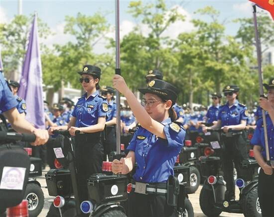文/图 羊城晚报记者 秦小辉 余宝珠 东莞玉兰女子城市执法服务队来了。5月27日,东莞玉兰女子城市执法服务队授旗仪式在市中心广场举行,这一刻也被东莞市城市管理和综合执法局相关负责人称为历史性的时刻。从这一天开始,东莞市玉兰女子城市执法服务队正式成立。 今后,在东莞的城市公园、学校社区、工厂小区,“城管小姐姐”们将会经常跟市民见面。她们将围绕巡查服务、宣传教育、柔性执法三大核心职能,以城市“大管家”的暖心服务,让城市更有温度、更有色彩。5月27日,在授旗仪式现场,羊城晚报记者随机采访了两位“城管小姐姐”。 [花絮] “深入一线、深入基层,用心倾听群众真实声音” 唐佳竹来自市城市管理和综合执法局政策法规科,法学硕士。作为一名高学历的城管“新兵”,唐佳竹今年4月就主动报名,参加到东莞玉兰女子城市执法服务队的组建、筹备、集训等工作中。在5月27日的授旗仪式上,唐佳竹的身份是东莞玉兰女子城市执法服务队副大队长,当她从东莞市妇联主席黄伟青手中接过“巾帼志愿服务队”旗帜时,她脸上洋溢着自信的笑容。 作为女子执法服务队学历最高的“小姐姐”之一,唐佳竹告诉记者,她曾作为第二期玉兰女子城市执法服务队的带班队长,与大家一起进行了三天的封闭训练生活。“城管的‘小姐姐’都非常有激情、有活力、有想法,每天早上7点到晚上9点,我们一起在骄阳下挥洒汗水、在课堂上勤思好问、在月光下围坐畅谈高歌,大家的精神面貌都非常好。”唐佳竹告诉记者,这样的培训一共有2期,共208名队员参加,这也是东莞玉兰女子城市执法服务队组建后的第一次大规模、高标准集训。现在经过集训、授旗后,大家已蓄势待发,表示将以饱满的热情投入到今后的巡查服务、宣传教育、柔性执法等工作中。 唐佳竹表示,作为刚毕业不久的新一代城管人,工作经验还存在很多不足,她希望能在做好女子执法服务队工作的同时,用脚步丈量城市,深入一线、深入基层,用心倾听群众真实声音,为日后在政策法规科的立法制定、政策调研、法制审核等工作奠定基础,也为自己人生增阅历、添色彩。 来自寮步城管分局的“小姐姐”吴少芝当天一早就从镇上出发来到活动现场,只见她娴熟地挥舞着手中的旗帜,在烈日下认真地操练着。作为寮步玉兰女子城市执法服务中队的一员,她已经先后参加了市局的数次专业培训,已“走马上岗”向广大市民群众宣传城管工作。吴少芝告诉记者,除了日常的城管工作,她们每周都会定时走上街头,穿街串巷做好各项城市管理宣传和文明劝导工作。 [期许] “通过服务宣传等非执法手段达到更好的管理效果” 在现场,记者还看到一个熟悉的身影,他顶着烈日站在玉兰女子城市执法服务队的一侧,紧紧盯着授旗仪式的每一个环节,他就是东莞市城市管理和综合执法局四级调研员陈锐光。一个多月以来,他全程见证了玉兰女子城市执法服务队从无到有,全程指导女子城市执法服务队前期的培训、集训以及授旗排练。 “玉兰女子城市执法服务队经历了从组建、排练到到今天的授旗,并得到领导的肯定,还是挺激动的。”陈锐光告诉羊城晚报记者,女子执法服务队是在全市铺开的,接下来将围绕“巡查服务、宣传教育、柔性执法”三大核心职能,以城市“大管家”的暖心服务,让城市更有温度、更有色彩。“其中,巡查服务职能,就是要求队员们发挥女性柔性的特点,去为群众提供服务,跟群众拉近距离,通过服务宣传等非执法手段达到更好的管理效果。”