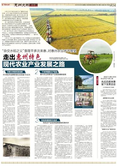 统筹策划/羊城晚报记者 陈骁鹏 马勇 文/图 羊城晚报记者 李海婵 通讯员 汤倩 5月22日“杂交水稻之父”袁隆平与世长辞,让不少惠州市民和农业同行扼腕悲痛。记者整理资料发现,自2