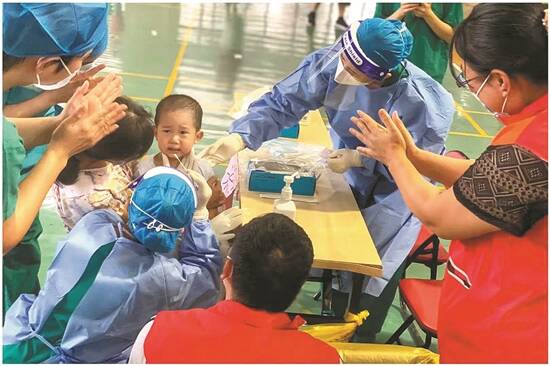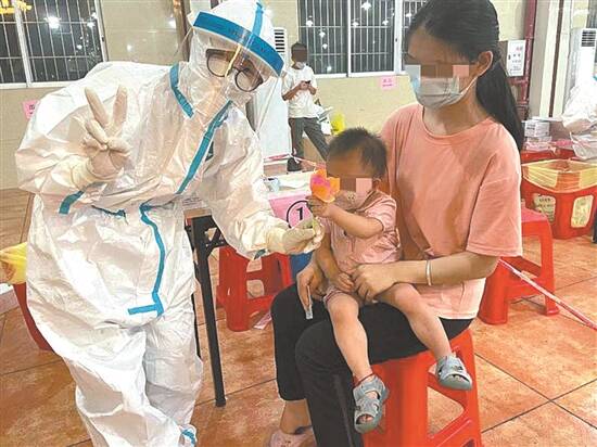 南海妇幼保健院医护人员为幼儿做核酸检测采样 |