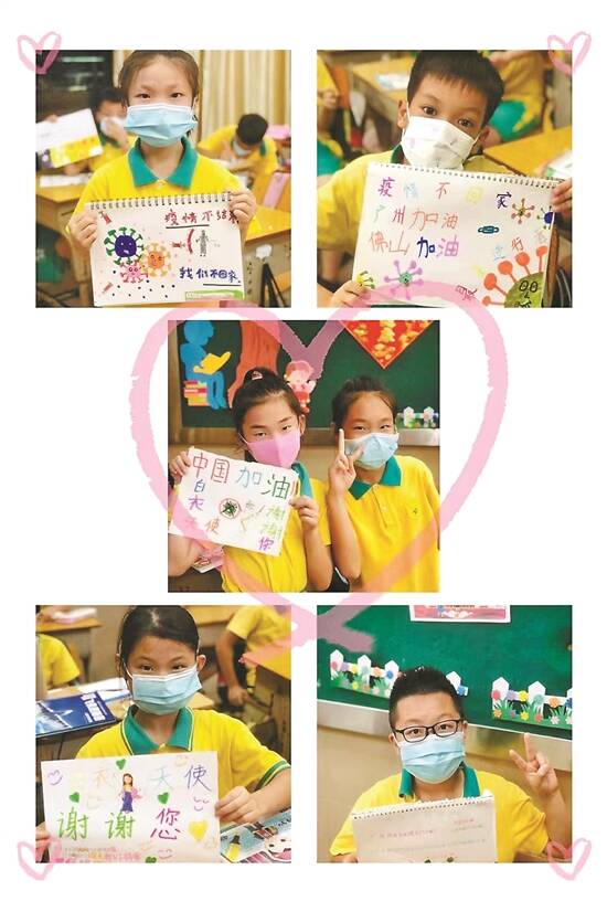 文/图 羊城晚报记者 张闻 梁正杰 “小朋友,张开嘴,姐姐帮你捉‘虫虫’啦!”哄着、哄着,孩子慢慢张开了嘴,检测员眼疾手快,将采集棉签在孩子咽喉里轻轻一抹,采集完成——对于佛山许多孩子们而言,今年这个“六一”比较特殊,从5月27日起,佛山南海、禅城先后开启大规模人员核酸检测,力争在最短时间里把新冠病毒传播链阻断。其中,面对少不更事的孩子,医护人员和党员志愿者“八仙过海,各显神通”,从中发生了许多有趣的故事,羊城晚报记者带您“管中窥豹”,聚焦这些瞬间。 看到手套气球那一刻,孩子终于张开了嘴 读者们,还记得那个2020年初驰援武汉,在视频里跟孩子说自己去“打怪兽”的许雪洁吗?作为佛山市第二人民医院产科护士长,本次核酸检测,许雪洁又站在了第一线。面对倔强的孩子,“打怪兽”的许雪洁和同伴们怎么会没有办法呢? 5月30日下午,在佛山市旭日社区采集点,采集高峰已然过去,许雪洁正想歇歇,一声哭泣引起了她和同事们的注意。原来,旁边一个卡位上,一位母亲抱着1岁的小男孩,或许是看到了医生拿出采集棉签,小男孩一下子就哭了出来,无论妈妈怎么哄都不肯张大嘴巴,采集工作就这样僵着。 “我本来以为,过去固定住小男孩的头,哄一哄他就会张开嘴了,没想到这个小孩挺‘聪明’,任凭我们怎么哄,就是不张开嘴。”作为产科护士长,许雪洁知道,这种情况下如果“硬来”,很有可能造成小孩窒息,唯一的办法,只有哄。 许雪洁和同伴们瞬间变成了“爱心妈妈”。大家围上去,一边拍手一边唱歌,一位“红马甲”叔叔更用手势模拟出各种各样的动物:小鸟、小虫……可是,小男孩还是不为所动。正当大家愁眉不展时,“红马甲”叔叔灵机一动,拿出一个医用手套当气球吹了起来,手套越来越鼓,小男孩的注意力逐渐被吸引了过来。趁此机会,许雪洁和同事们立刻哄道:“小朋友,张开嘴,姐姐给你的嘴里捉虫虫啦。”不一会儿就完成了这个“艰巨的任务”。 “‘捉虫虫’是我们的行话,只要有小朋友过来,我们都会哄着说是‘捉虫虫’。”许雪洁笑着说。采样结束后,大家给了小男孩一个大大的“赞”,看着第一个手套气球有点漏气了,许雪洁和同事们又吹了一个大大的手套气球送给小男孩,“早知道我们就从儿科多拿点小红花过来,送给小朋友了”,事后,许雪洁还总结经验。 别看场面这么温馨,其实,当时的许雪洁,已经忙得3天没回家了。许雪洁在前线奔忙时,曾相信自己去“打怪兽”的3岁儿子和照顾他的爷爷都发了烧。然而,许雪洁只有在28日晚孩子来医院看病时见了孩子一面,甚至连第二天公公到医院打针都没法相陪,“我是医务工作者,这个时候国家需要我。”许雪洁又说出了她驰援武汉时说出的那句话。 我很忙,但是我还是要听完孩子唱的那首歌 “听我说谢谢你,因为有你,温暖了四季。谢谢你,感谢有你,世界更美丽……”5月30日晚上10时许,在三水白坭采样点,年约5岁的小女孩与其母亲一同,在肺病呼吸科主管护师方泽佳旁唱起了歌曲。回忆起这一情景,方泽佳依旧觉得感动。 据悉,由于她具有抗疫经验,当天被安排负责巡查工作,穿着防护服满场跑以查漏补缺,同时确保采样工作规范安全有序。在同事换班时,她还没来得及休息便主动顶上,采样近3小时后,碰到了送花的小女孩。 竖起大拇指、指指嘴巴,由于防护服的阻隔,大多数市民听不清采样者说的话。当晚的孩子却尤其多,为了让他们放松,方泽佳坚持鼓励每一位采样的孩子,大声说着“真棒”“嘴巴再稍微张大点”“真乖”……这样温暖的坚持打动了送花的孩子及其母亲,她在纸花上写着“祝愿白衣天使们像花儿一样健康美丽,生活像太阳一样充满阳光”。虽然有些害羞,但仍鼓起勇气给方泽佳说了句“谢谢姐姐”,并为现场的采样护士们唱起了歌。“为了不耽误核酸采样工作,也不辜负小女孩的心意,我让她们就站在边上唱歌,告诉她们我听着呢!” “当时已经坚持9个多小时,人也有些懵,但听到孩子清亮的歌声,感觉好像打了鸡血,能量又都回来了。”方泽佳表示,原来大家并不认为医务人员的付出都是理所当然的,而充满了感激,这让她感到充实而快乐。实际上,自5月28日被派往社区支援,方泽佳便没有好好休息过。据方泽佳所知,几乎所有人都是刚刚结束了一天的白班,便又匆匆投入新的“战场”。“接到通知的时候,几乎所有护士都报了名,看到群里长长的接龙,凝聚的佛中医力量让我既感动又骄傲。” 鞠躬、献歌、写心意卡、画手抄报,这些是孩子送出的礼物 “各位战士,在这个特殊的时刻,真的很想给你们一个拥抱,让你们脱下防护服,好好地歇一歇。”“大家一起努力,共克时艰,风雨同舟……”5月28日晚以来,南海区部分镇街安排医护人员进校为学生进行核酸检测。不少学校、幼儿园都以此为契机,开展感恩教育。这几天来,暖心瞬间在校园内频频涌现,学生们通过写心意卡、歌曲、画手抄报等方式向医护人员致敬。 自5月28日起,南海区各中小学进一步加强防疫措施,29、30日,各住宿中小学校,尽可能安排留校并开展第二课堂活动,部分高中学校相继发布校园半封闭、全封闭管理公告。 5月29日晚,南海外国语学校六千多名师生在校完成核酸检测采样。有部分学生用信笺、画画表达对医护人员的感谢。有学生写道:白衣天使们,你们是夜空中最亮的那一颗星;我相信只要相信爱,我
