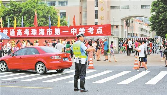 交警在一考点执勤(资料图) 杨小江 摄 |
