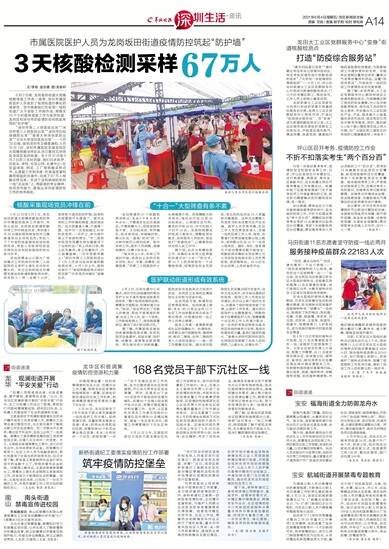 “请先扫码登记信息”“请问最近有没有去过疫情风险地区、有没有收到通知进行核酸检测的信息”、“大家按一米距离排队等候检测”……6月1日,坪山区龙田街道大工业区党群服务中心开放成为街道核酸检测点,门口