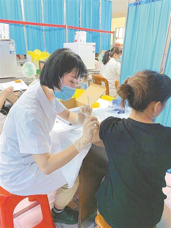 文/图 羊城晚报记者 蚁璐雅 通讯员 李丹丹 “人齐了,出发!”五月初,汕头大学医学院附属肿瘤医院(以下简称“汕大医学院附属肿瘤医院”)19名疫苗接种队员整装待发,启程出发前往潮南区井都镇及陇田镇多个疫苗接种点支援疫苗接种任务。虽然任务重、时间紧,但却不是汕大医学院附属肿瘤医院第一次扛上重担——有了4月1日第一次接种的经验,该院接种队迅速进入工作状态,做好准备迎接前来接种第二针疫苗的村民。 由于接种地点距医院有一个多小时的车程,连日来,支援队的队员们在清晨迎着第一缕朝阳便整装出发,坚持提前到岗;期间又马不停蹄,忙得热火朝天又有条不紊;最后披星戴月,收获满满喜归家……这群白衣天使,用实际行动诠释使命担当,齐心协力编织起这张疫苗保护“网”。 烈日当空,炎热的接种现场也在考验着医护人员。临时接种点场地搭棚于当地户外戏台,无法安装空调,虽然几台大风扇正开足马力输送凉风,但仍然无法吹散医务人员额头上的汗珠。而每一次看似简单的注射工作,也要重复上百次……当夕阳西下,长达10小时的接种工作早已让医务人员汗流浃背、疲惫困倦,但他们依然毫无怨言,兢兢业业地完成任务。 连日来,医务人员与村民之间的感人细节也在悄然发生。在汕大医学院附属肿瘤医院手术室护士陈跃的接种随笔中,就记录下许多动人的温情瞬间。比如6月2日当天,进入汕头市陇田镇华瑶社区的支援车队被排队接种疫苗的车龙堵在了半路,让医护人员意想不到的是,此时站在雨中排队等候的村民们挽着裤腿、举着伞,看到从车上走下来穿着白大褂的工作人员后,纷纷让出了道,人群中还传来这样一句话:“汕头大学的医生护士下来我们这边帮忙我们打平安针的,大家让一下,小心雨伞的水不要溅到医生们”。一句并不标准的普通话,拨动了在场所有医护人员的心弦。 记者从汕大医学院附属肿瘤医院获悉,截至目前,该院共派出25批次、191人次前往潮南区多个疫苗接种点支援,平均每天圆满完成上千次疫苗接种工作,最高日接种疫苗达2208剂次。