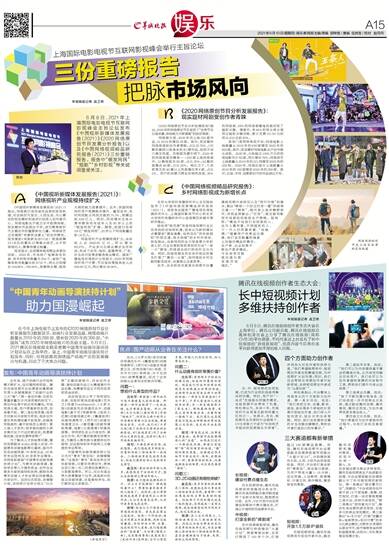 羊城晚报记者 龚卫锋 6月8日,2021年上海国际电影电视节互联网影视峰会主旨论坛发布《中国视听新媒体发展报告(2021)》《2020网络原创节目发展分析报告》以及《中国网络视频精