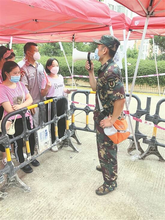 5月14日至今,坪地街道武装部民兵应急分队队员钟锦兵一天也没有休息,一直在集中注射新冠疫苗现场和核酸检测点参与抗疫。夏天的深圳,骄阳和暴雨交替,在这样的环境中,钟锦兵和队友以及其他抗疫工作者一起闻令而动,构筑了一道坚固抗疫防线。 从去年春天开始,从高速公路口执勤到健康驿站接收境外归国隔离人员。一年多来,钟锦兵一直奋战在抗疫一线。去年,他被评为“龙岗区优秀共青团员(防疫专项)”。对此,钟锦兵这样说:“民兵就是‘若有战,召必回,战必胜’,能够参与到深圳的抗疫工作中,是使命所在,也是我作为一名退伍军人的荣光。” 积极参与疫情防控工作 5月28日,龙岗区坪地街道开放了彩云体育馆作为新冠疫苗集中接种点。疫苗接种8时开始,钟锦兵和队友们7时就来到现场,搭防晒棚、放好排队拦挡,准备填表材料,熟悉工作流程。8时开始,他们分组值班,开展防疫宣传、体温检测、维护秩序等工作。 受“5·21”疫情影响,近期有意愿接种疫苗群众人数激增。分时段预约接种方式,加上优化流线、合理设置标识牌、人员引导等措施,彩云体育馆很快形成“等候—登记—接种—留观—离场”闭环,各功能区域秩序井然。但钟锦发现,已经进入场馆内等候的群众,因为要填表格又会纷纷离开座位到前台取表格,让流程卡壳。于是他想办法将接种疫苗所要填的表格发放到等候群众的座位上,给每人准备笔,让他们填好了往后传,保证了秩序井然。 “若有战,召必回,战必胜” 事实上,钟锦兵从去年2月就一直在抗疫战线上。去年春天,钟锦兵在高速公路口执勤测体温,随后在健康驿站接收隔离人员。越是危险的地方,他越是冲在前面。 2016年从部队退役后,钟锦兵来到坪地街道武装部民兵应急分队。工作中,他一直带着部队作风,全身心投入。过年时,民兵应急分队需要战备值班,他总把休假机会留给其他同事,连续几年没有回老家和亲人团聚。2020年春节,是他来深工作后第一次申请了回家过年。风尘仆仆赶回家,正和父母妻儿其乐融融团圆,收到了回深工作的通知。当时那一幕,钟锦兵至今印象深刻。“妈妈一边抹眼泪一边和我说,‘孩子去吧,送你去当兵是对的,你这辈子就是穿这身衣服的了’。爱人知道我的性格,忍泪说,‘你是我的骄傲!’ 回到单位,钟锦兵第一时间提交了请战书。2020年1月,疫情还在肆虐。1月26日,大年初二,钟锦兵来到了防控一线,在深圳东大门高速上,对人员车辆进行体温检测,把病毒拦在了高速路口。期间他主动要求值夜班,从晚上九时工作到第二天上午九时,在高速口连续执勤站岗12小时是常事。“我当时就一个想法,一定要与国家一起坚决打赢疫情防控阻击战!” 到了三月,结束高速卡口测量体温工作,钟锦兵便前往健康驿站,穿上防护服参与接收境外回国人员,测量体温、办理入住、登记信息等一系列工作。“任务虽然比较艰巨,也充满了一定的危险,但我主动请缨。”钟锦兵说,“我把穿着防护服的视频发给儿子看,儿子自豪地说,‘我爸爸会变身,变成超人保护人类’。这回轮到我的眼泪出来了。” 提到自己的“拼命”,钟锦兵说,武装部民兵应急分队是块砖,哪里需要哪里搬。这一路参与抗疫,他们也越来越有底气和信心。干活特别累的时候,耳边常想起退伍誓词里的话:‘退伍不褪色和全心全意为人民服务;若有战,召必回,战必胜。青春有很多样子,很庆幸我们的青春有穿军装的样子!’” (文/图 李薇)