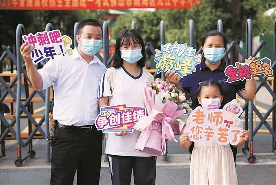 高考结束,家长在校门口和孩子合影 梁平 摄 |