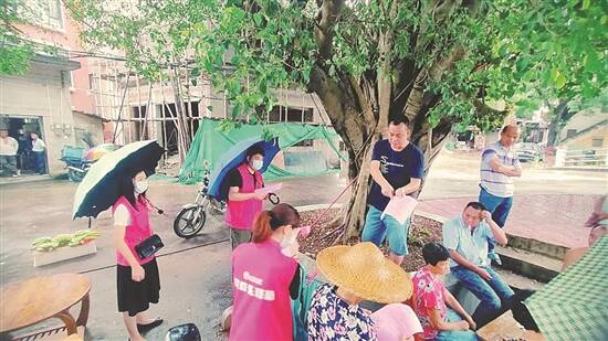 羊城晚报讯 记者欧阳志强、通讯员龙宣摄影报道:端午期间,是打好疫情防控硬仗的决战期、做好安全防护工作的关键期,佛山市顺德区众多党群志愿者放弃休假,下沉一线,挨家挨户做好防疫知识宣传,指导督促落实防疫措施,织牢织密联防联控“防疫网”,保障人民群众平安祥和过节。 其中,顺德区龙江镇高度重视,全镇1000多名党群志愿者放弃休假。6月11日-14日,根据龙江镇防疫指挥部工作安排,龙江镇各村(社区)“两委”成员联合驻村工作组、村(居)委会工作人员、党群志愿者等,以电话联系、入户走访等多种形式,挨家挨户开展防疫宣传,劝导群众不外出、不聚集,配合开展防疫工作,并及时为未接种疫苗人员做好安排。 无论当面答疑,还是电话普访,党群志愿者始终细心引导、耐心解释、积极有礼,确保防疫宣传每小区不漏一户、每一户不漏一人。 6月12日,西溪社区联合驻村工作组、党员志愿者、村长、妇委、社区工作人员共90多人开展防疫宣传工作;驻坦西工作组、龙江供电公司、龙江邮政分局和龙江农商行组建党团志愿服务队奔赴坦西社区,宣传假期居家倡议和防疫知识,引导和帮助居民预约接种。 除此之外,6月11日晚-12日,龙江镇教育线党委号召898名党群志愿者深入文华社区,仅用一天时间就将21个主要楼盘,共计345栋楼超17573户全部走访完毕。尽管端午遇到下雨天,龙江镇宣文办驻村工作组依旧深入村居走访宣传疫情防控举措。 餐饮店、超市、商铺、药店、市场等也是本次疫情防控的重点场所,本次志愿服务过程中,1000多名党群志愿者深入重点场所进行拉网式排查,要求相关负责人落实防疫主体责任,严格执行佩戴口罩、测体温、亮健康码等具体要求。 6月13日,龙江司法所驻村团队联合东海村委会全面核查辖区内餐饮、药店、诊所、农贸市场、网吧等重点场所的防疫措施落实情况,对未落实到位的商铺现场督促落实整改。 为了感谢志愿者,6月13日下午,龙江坦西热心居民送上水果和甜品,慰问奋战在防疫一线工作的党员和群众。 不论白天黑夜,党群志愿者们始终风雨无阻地坚守防疫一线,齐心协力织密织牢联防联控“防疫网”,在这场全民战“疫”中充分发挥着战斗堡垒作用和先锋模范作用,同时,凭借细心的服务、贴心的宣传,赢得了不少群众的肯定和点赞,密切了党群关系,党群心连心,共同筑牢疫情防控防线。