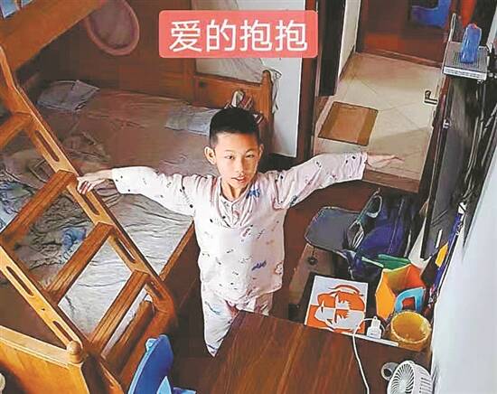 文/图 羊城晚报记者 郑达 通讯员 董飞 父母分别在两地投入抗击疫情的工作,家里“没有大人”,孩子会怎样做?来自珠海的9岁少年邓昊铭仿佛“一夜间长大”,用实际行动撑起了整个家。 “我是个小男子汉” 邓昊铭的父亲邓定伟是一名广东省中医院重症医学科主治医师,在珠海为危重症患者监护诊疗,还承担疫苗接种、核酸筛查任务,工作繁重,很少回家。他的母亲罗瑜是广东省中医院芳村医院的一名护士,疫情来袭,她主动请缨,前往广州支援抗疫工作。 邓昊铭的父母都知道,自己要站在最前线。但是家里只有年仅9岁的儿子昊铭和年近70岁的老人,怎么办呢?夫妻俩紧急召开了一个特殊的家庭会议,把情况告诉儿子:“只有你和爷爷奶奶在家,你已经是小男子汉了,要学会照顾自己和爷爷奶奶,扛起这个家!” 儿子沉默了一会儿,蹦出一句“那爸爸妈妈是要很久才能回来吗?”“对,我们现在要去医院了。”小昊铭全程不敢直视爸爸妈妈,话不愿多说,一说就要掉眼泪。他一个人默默走回房间,继续上网课。母亲罗瑜出门时,母子抱在一起哭成一团。 当晚,邓定伟打开儿子的聊天框,发现网名悄悄改成了“我是个小男子汉”。这时他还没想到,这个“小男子汉”会给他多少惊喜。 小男子汉一夜间长大 过去,昊铭的生活起居都是家人一手操办的,夫妻俩一直都有些担心他的自理能力。但是很快,昊铭就给了他们一个惊喜。 6月1日,是小昊铭经历的第一个没有父母陪伴的儿童节。这天,小昊铭起了个大早,要给爷爷奶奶做奶茶和果汁。这两种饮料他都只见过妈妈做过,这还是第一次尝试。午饭时间,夫妻俩看到了一张有些惊讶的照片。照片里一个锅、一杯橙汁、两杯奶茶,一只手从锅里舀奶茶进杯子里:小昊铭的奶茶和果汁做好了。除了奶茶和果汁,小昊铭还跟着爷爷学了许多菜,西红柿炒蛋、水煮牛肉、油焖鸡…… 不仅爷爷奶奶有礼物,爸爸妈妈也有。这天老师布置的作业是剪纸创作,他做了两张剪纸作业:一张是戴着口罩在一线抗疫的“妈妈”,一张是头顶有医院十字形标志的“爸爸”。“他生生把儿童节过成了劳动节。”邓定伟说。 爷爷有痛风,奶奶腿脚不好,于是小昊铭把晾衣服、洗碗、扫地等简单的家务活一人包揽了,他还把自己房间整理干净,拍照发了过来:“爸爸妈妈,以后我每天都会把房间收拾得干净整洁!”每天晚上夫妻俩和孩子视频时,都能看到新的惊喜。“看到孩子每天都有进步,感觉很欣慰。”邓定伟说。 不仅如此,他还成了家里的“小家长”,带爷爷奶奶下楼,熟练操作扫码登记、配合社区完成核酸检测,回家后还监督爷爷奶奶做好清洁消毒。爷爷腰腿不适,他便在视频下通过爸爸的指导,开好了处方,为爷爷购买了贴膏,嘱咐吃药,告诉爸爸妈妈,“我会照顾好爷爷奶奶的,请爸爸妈妈安心工作!” 在做好这些事情的同时,小昊铭的学习也没有拉下,上网课时,身为班长的他学习认真、专注,作业多次被老师表扬。 看着孩子一天天进步,在珠海的邓定伟也一点点放下了心:“可能是我们平常帮小孩做的事情比较多,没有放手让他自己去做,这次我发现他有很大的改观,会自己安排好时间、学习跟生活都能够帮上忙,就好像真的觉得小孩一下就长大了。” 把想说的话都装进盒子里 虽然一夜间成长了不少,但是小昊铭依然只是个9岁的孩子,难免会想爸爸妈妈。于是他做了一个手工盒子,忍不住想爸爸妈妈时,就写下一封信,放进盒子里。“爸爸妈妈在抗击疫情,我不能让你们分心,我把想说的话都装进了盒子里,等你们回来,我再说给你们听!” 小昊铭在信里说,他想他们、爱他们,但他会以爸爸妈妈为榜样,勇敢担当,做好自己力所能及的事情,不让他们担心。 “有时候看着视频里离得很近、却不能抱着的孩子,心理很难受,他就会张开双臂,给我们‘爱的抱抱’。”邓定伟说,虽然没有办法像爸爸妈妈一样冲在抗疫前线,“但他用自己的方式,努力为抗击疫情贡献一份力量、传递一份温暖。”
