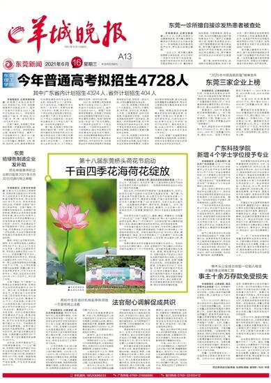 1957年10月1日创刊 2021年6月16日 星期三 辛丑年五月初七 湾区新闻部主编/责编 张德钢/美编 夏学群 / 校对 林霄 广告热线:0769-