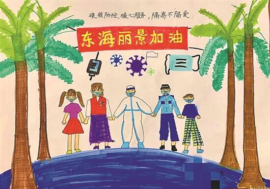 隔离小区孩子送给基层抗疫人员的画作 |