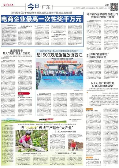 羊城晚报讯 记者欧阳志强、通讯员佛农宣摄影报道:为营造保护渔业资源和生态环境的良好氛围,进一步促进水生生物资源恢复和水生态环境改善,助推渔业高质量发展,佛山将于6月、7月分两场在南海区九江镇