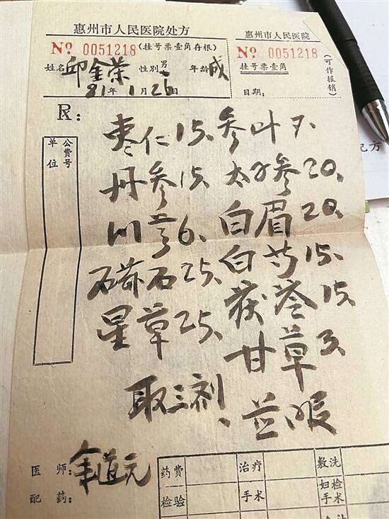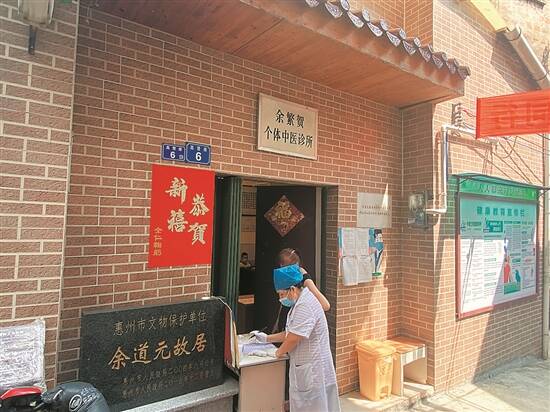 统筹策划 羊城晚报记者 陈骁鹏 马勇 文/图 羊城晚报记者 李海婵 夏日炎炎,广东省历史文化街区——金带街早早开始热闹起来。在金带街高营房6号,“惠州市文物保护单位”——余道元故居一开门,街坊陆续前来,但并非参观而是前来寻医。2013年,这里重新装修开了诊所。一个上午,余道元的小女儿余繁贺便接诊了10余位“老客户”。小小的诊厅内,本地话问候声此起彼伏,气氛融洽。 说起余道元,老惠州人都知道这是一位有名的中医。余道元少时目睹父亲因庸医治理不当去世,愤而学习中医。从医半个多世纪,余道元所治疑难病症无数,在东江地区颇具盛名,备受爱戴。1978年,余道元被授予“广东省名老中医”称号,被称为“惠州三大名中医之一”。虽然逝世多年,余道元影响依然深远,留下经典药方令后人受用至今,其10余名学徒“开枝散叶”遍布东江,仅余家两代便有10人学医从医。 疫情之下,人们的目光再度投向中医药这一国粹。惠州中医药资源丰富,作为全市唯一的“名医故居”文保单位,余道元故居被重新活化后,焕发生机,促进了传统中医药文化的传播,成为一道独特的人文风景线。 实地走访 故居修缮一新 药香绕梁不绝 余道元故居坐落在环境优美的西湖旁,位于人文荟萃的金带街,与省文保单位黄氏书室仅一墙之隔。近日,记者从环城西路进入金带街,往前走百余米,便可看到右侧“高营房”的路牌,再沿着坡道走几十米,就能看到余道元故居。 远远望去,与周围老屋相比,余道元故居显得焕然一新。外墙面贴着仿古的瓷砖,高处挂着“余繁贺个体中医诊所”的招牌,一旁竖立着惠州市文保单位石碑。走进屋内,一股浓厚的中药香味扑鼻而来,人们率先看到的是“德医双馨”的书法墨迹以及中医传统“望闻问切”等科普知识,客厅墙上悬挂着余道元生前照片。早上八时,诊所开门后,老街坊陆续排队,护理人员忙着抓药,故居慢慢热闹了起来,问候声、欢笑声不断。 事实上,2013年之前,这里几乎无人问津。余繁贺告诉记者,故居建于民国时期,她自从有印象以来,一家人就在此居住,直到父亲去世。房子共有100多平方米,由4处旧屋组成,2004年被评为惠州市文物保护单位。 1983年,余道元去世后,兄弟姐妹独立成家,陆续搬离,上世纪90年代故居便无人居住了,10多年来一直闲置着。随着城市化发展,周围建筑施工,加上风吹日晒等影响,房子逐渐老旧,每隔一段时间就会出现新的裂痕。回忆起当时的场景,余繁贺仍记忆犹新:大堂屋顶瓦砾掉落一地,地上杂草丛生,里屋的窗户已经破烂,屋顶横梁因被白蚁侵蚀,有的已经掉落在地,屋子的墙面也留下长期被风化的痕迹,故居旁还有一堵危墙,极易发生意外事故。 不忍看到从小长大的老宅如此破败不堪,也不希望父亲的故居坍塌湮灭,余家兄妹商量着进行修缮。经过与相关部门多次沟通,2013年8月,余道元故居重新修缮竣工。余繁贺说,在修缮过程中,故居遵循着文保单位“修旧如旧”的原则,尽量保持着故居的模样。父亲住过的旧屋保持原样,保留着以前的地砖;能用的箱子木柜也依旧用着;客厅大堂书柜都放着父亲的照片。 “父亲生活很简朴,这里就只放着一张床、一张书桌和木椅。”站在父亲的卧室,余繁贺触景生情,回忆父亲工作繁忙,但一有空就喜欢看医书,或者吟诵诗文。那时,在家中、办公室诊台上总放着医书药典,即使是在上班途中,他坐在人力三轮车上还看医书。天气好的时候,他喜欢把书搬出来晒太阳。 市民回忆 余老德医双馨 市民半夜挂号 提起老中医余道元,年轻的惠州市民感到陌生,但老惠州人或多或少都听过他的传说。今年74岁的市民史明回忆,小时候父亲带他到惠州市人民医院中山南门诊找一个老医生看病。史明记得,那个老医生个子瘦高,面部皱纹十分深,穿着半旧且已洗得发白的蓝唐装上衣,下身穿或蓝或黑的裤子,裤腿较宽,脚上蹬着千层底活口布鞋。看上去,十分沉静、严谨、少语且不苟言笑。“虽常听余道元先生的故事,但那时才对上号,知道他就是闻名东江的老中医!” 坊间更是常流传着言语:“有病了?让余道元摸一下呗!”“找余道元开个方子吧。”史明记得,50年前,他每次路过中山南门诊部门口,都能看到很多人在那里排队,大都是在排队等挂余老先生的牌号看病,可谓门庭若市。“有时排在最前面的人躺在门口,身上还裹着毛毯,不用说,肯定是半夜就来排队挂余先生的号!” 让史明真正感受到余道元高超医术的是,有一次父亲带着他去看病,余道元为他切了左右脉之后,问:“拉肚子?吃李子了是吗?”当时,史明却一心想看的病是慢性支气管炎,对其他并不在意,便否认了。余道元便说:“没问题,没问题,慢慢来。”实际上史明真的在拉肚子,也确实吃了同班同学买的李子。“吃过李子也能诊断出来,太厉害了!那时候,我也就明白了惠州的父老乡亲为什么总交口称赞余道元先生了。” 余道元逝世已经38年,仍备受老街坊的敬仰,与他高尚的医德密切相关。余繁贺说,小时候经常半夜三更有急诊找上门,父亲二话不说,披个衣服就出门。他临终前卧病在床,仍艰难地为一名白血病患儿开处方。从医几十年,他对危重病人、远道病人、妇婴、老人来诊,注意优先照顾。经常对穷人或农民赠医施药,对无钱抓中药的患者,他还拿用自己的工资抵数。有一回遇到一村妇抱着发烧的小儿来看病,余道元见小孩光着身子,十分可怜,现场