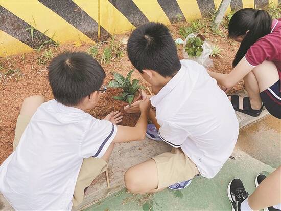 羊城晚报讯 记者沈婷婷摄影报道:近日,深圳市景园外国语学校为庆祝中国共产党成立100周年举行了“景园少年向建党百年献礼——献一首歌,献一首诗,献一片绿”系列活动。景园师生以班级为单位唱响建党经典歌曲,满怀深情书写献给党的情诗,为自己的班级种植一片小小的绿地,为共产党百年诞辰送上一份特殊的礼物。 在种植现场,师生热情高涨、干劲十足,大家挥锹铲土、填土压实、洒水浇灌,干得不亦乐乎,活动繁忙有序、热火朝天。新栽的小菜苗迎风挺立,为学校增添了一抹盎然的绿意,成为校园一道亮丽的风景线。师生们体验耕耘种植的艰辛,感受生命成长的过程,一个个忙碌的身影构成了建设绿色校园的最美“音符”。
