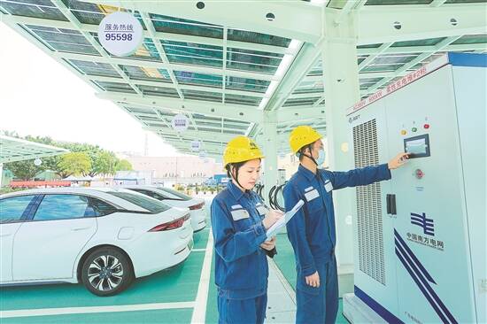 东莞供电局工作人员在巷尾站对电动汽车充电站进行检查 顾萱 摄 |