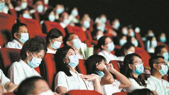 文/图 羊城晚报记者 余晓玲 通讯员 莞宣 7月9日下午,电影《中国医生》东莞首映礼暨答谢医护人员观影活动在东莞万达影城东城店举行。活动由中共东莞市委宣传部、中共东莞市委网信办、东莞市卫生健康局作为支持单位,由博纳影业、万达影城和东莞淘腾文化传媒主办,专门邀请了180多名东莞援鄂医疗队代表和东莞抗疫医护代表参与观影,表达对医务工作者无私奉献精神的敬意和谢意。 电影《中国医生》根据新冠肺炎疫情防控斗争的真实事件改编,以武汉市金银潭医院为核心故事背景,同时兼顾武汉同济医院、武汉市肺科医院、武汉协和医院、武汉大学人民医院(湖北省人民医院)、火神山医院、方舱医院等兄弟单位,以武汉医护人员、全国各省市援鄂医疗队为人物原型,全景式记录波澜壮阔、艰苦卓绝的抗疫斗争。作为一部全景式战疫大片,《中国医生》全力展现了生命至上、人民至上、舍生忘死、举国同心、守望相助的抗疫历程,同时也弘扬了抗疫斗争中凝聚起来的伟大抗疫精神。 据悉,去年以来,东莞派出三批57名医务人员出征驰援湖北,与湖北人民同舟共济、共克时艰,圆满完成中央和省交给的光荣使命,为打赢武汉保卫战、湖北保卫战贡献了东莞力量和东莞智慧。 今年6月18日以来,东莞再度出现本土确诊病例,东莞全城动员、上下一心,在较短时间内妥善应对处置了全国首宗高校疫情,也在较短时间内快速完成了全市上千万人的全员核酸检测工作,及时阻断了病毒传播链条,让疫情得到了有效控制。这一切离不开东莞广大医务工作者的英勇顽强、负重前行。观影过程中,不少观众热泪盈眶,亲身参与抗疫一线的广大医护人员,心中更是百感交集。 另据记者了解,6月18日以来因疫情而暂时关闭的东莞市电影院于近日有序复业,除了9日首映的这部以武汉医护人员、全国各省市援鄂医疗队为人物原型的电影《中国医生》之外,还有讲述中国共产党诞生历史过程的《1921》《红船》,首部聚焦中国共产主义运动先驱李大钊的电影《革命者》,下来还有以抗美援朝战争第二次战役中的长津湖战役为题材的《长津湖》等。