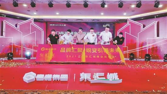 7月8日,江门东汇城广场招商发布会暨商家签约仪式隆重举行,国美、苏宁易购等品牌商家200多名代表,以及江门商业协会、江门餐饮协会代表、媒体等出席了活动。 活动中,东汇城代表与商家代表共同按下启动键,随后分批与商家进行了入驻签约,众多邀约品牌纷纷表达合作意向。富港副总裁李森林致辞表示,总投资超22亿元,总建筑面积约50万㎡的江门东汇城,未来不再仅是一个单纯意义上的购物中心,而是一个可以提供全方位体验与社交的空间,填补了区域商业空白,将打造与众不同的“一站式全能生活”。 (文/图 谭耀广)