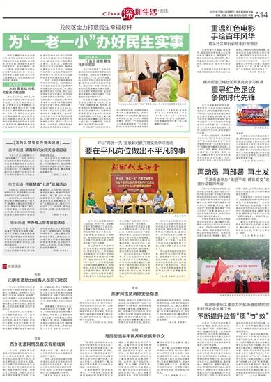 深圳正着眼打造民生幸福标杆,率先形成共建共治共享共同富裕的民生发展格局,幼有善育、学有优教、老有颐养是其中的重要环节。龙岗区围绕“一老一小”群体,积极开展“我为群众办实事”实践活动,进一步关