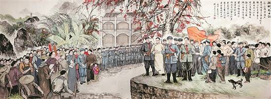 文/图 羊城晚报记者 蚁璐雅 通讯员 潮文联 6月28日上午,在潮州美术馆,由潮州市委宣传部、市文学艺术界联合会、市委党史研究室联合主办的“潮州映日红——潮州市红色文化题材美术主题创作展览”开幕式暨文学、美术作品集首发式拉开帷幕。连日来,潮州美术馆人气高涨,众多群众前来感受艺术气息,这批汇聚了几十位艺术家心血的红色作品,涉及100个题材,成为潮州市党史学习教育新的生动教材。近日,羊城晚报记者前往潮州美术馆探馆,感受这个艺术盛宴中扣人心弦的红色故事、不可磨灭的红色基因。 通过喜闻乐见的艺术作品感受历史 沿着石阶拾级而上,步入潮州美术馆的一楼展厅,硕大、亮丽的红色主题展板便映入眼帘,在浓烈的红色历史氛围中,一张讲述潮州红色故事、展现红色基因的艺术长卷舒展开来,一段段革命事迹、一个个战斗英雄形象接连跳进记者的视线。 记者在展厅看到,此次展出的作品主题鲜明、品类丰富,囊括了国画、油画、水彩画、版画等画种,也不乏部分雕塑作品,内容涵盖革命史迹、革命事件、红色场所、英雄人物等,分别在三个展馆中进行陈列,尽显潮州文艺家对建党百年伟业的热情讴歌。据悉,本次展览将持续至2021年7月28日,免费向公众开放。 据潮州市文联主席程小宏介绍,自去年底,潮州市文学艺术界联合会策划并启动了“潮州映日红——潮州市红色文化题材文学与美术创作活动”,并请潮州市委党史研究室从潮州丰富的红色历史题材中筛选了潮州红色文化一百题,根据“潮州市红色文化题材”不同革命时期的特点,拟定出“红色曙光、星火燎原、抗日烽火、浴血战斗、革命丰碑、人物造像”等6大板块,广泛动员和组织作家、美术家和文艺工作者、青年学生自主选题创作,并结集出版和展示。 “如何创作出人民群众真正喜闻乐见的艺术作品,是我们一直重视并思考的,美术作品只是一个载体、一种手段,我们‘醉翁之意不在酒’——真正的目的是让参观者通过生动的艺术创作去读懂故事、感受历史。”程小宏告诉记者,为了更生动地表现出红色历史,他动员艺术家们从不同的角度切入,用自己熟悉的体裁、擅长的表现手法和生动的文学与艺术表达。同时,通过组织专家集中辅导、进行创作草图点评等形式,对创作的近百件作品进行精心打磨,力求精益求精,将历史与美学的概念连接起来,唱响这首献给党的赞歌。 《浩气乾坤》《许若愚、李禅香》的作者罗耀环向记者介绍道,他对自己作品的要求是“既能远观、也可近看”,不仅要用独特的创作角度和视觉效果吸引参观者的眼球,同时也要对英雄人物的细节表现进行反复推敲。为创作出好作品,他搜集、查阅了不少历史资料,而在此期间,这个来自韶关的“新潮州人”也更深入地了解了潮州红色文化。“潮州文化底蕴特别深厚,这是我来到潮州的原因之一,这座城市还有很多值得挖掘、值得展现的艺术创作题材,接下来,我还将继续去探索。”罗耀环说。 文艺界形成强大合力打造红色品牌 “站在两个100年的交汇点,作为文艺家,我们有责任、有义务,以手中之笔,打造属于这个时代、属于潮州的史诗性精品力作,为时代画像、为时代立传、为时代明德。”正如程小宏在创作选题会上提出的,近段时间来,潮州掀起了一阵艺术风潮,多个艺术展示平台受到了市民游客的青睐,人民群众日益增长的精神文化需求也在其间得到满足。 潮州美术馆作为粤东地区首个建成的公共美术馆,就成为一处“网红打卡地”。自去年5月开馆以来,潮州风物、脱贫攻坚、美丽乡村、国潮艺术等主题展接连而来,潮州美术馆也成为推进党史教育、青少年教育的重要阵地。 除此之外,近年来潮州的文化读物、红色读物也硕果累累,接连推出了《潮州乡村红色故事》《使命——潮州精准扶贫纪实文学》《潮州映日红》等品质读物。而这一系列助力激发爱国热情、鼓舞干事创业斗志的作品也化身为群众办实事中的重要载体。今年以来,潮州市文联号召全市广大文艺家、文艺工作者共同参与创文创卫工作,开展结对共建工作,通过实地走访,了解基层亟需解决的突出问题,形成全民参与的生动局面。在各种活动中,这批红色读物也随着下沉队伍的脚步,出现在街口、村口等各个角落,为人民群众讲好革命故事,让更多人不忘来时路,牢记初心使命,承担时代责任。 文艺工作者们积极下沉到街道、乡村进行惠民志愿活动的事情正在发生,比如设计具有古城特色的创文创卫宣传海报、举办文艺界“创文创卫”主题文艺汇演活动、邀请作家和文艺评论家到社区采写创文创卫行动中的优秀事迹和典型案例、在社区举办文学家讲座分享会……当下,潮州全市文艺力量正聚集成强大合力和规模效应,纷纷为打造潮州红色文化品牌、讲好潮州红色故事、做大做强潮州红色文化、提升潮州红色文化的影响力贡献自己的一份力量。 文脉链接 文/整理 蚁璐雅 通讯员 黄礼熙 此次作品展得到了潮州广大艺术家、文艺工作者以及青年学生的热烈响应,大家从不同的角度切入,用自己熟悉的体裁、擅长的表现手法和生动的文学与艺术表达,共同深情奏响了一首红色赞歌。受版面篇幅所限,记者只能从众多主题鲜明的展出作品中精选出以下几幅作品,以飨读者。 林氏试馆 中共饶平县党支部(毛泽覃隐蔽处) 1925年上半年,饶平籍的在广州、