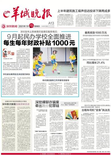 羊城晚报记者 沈婷婷 7月13日,教育部召开新闻通气会,介绍义务教育课后服务和暑期托管服务工作有关情况。会上,深圳市教育局局长陈秋明介绍了深圳开展课后服务工作有关情况,截至目前,全