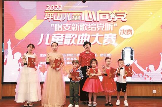 7月13日至14日,坪山区群团工作部、区教育局在区群团活动中心联合举办2021年“坪山儿童心向党”系列活动之亲子诵读比赛暨“唱支新歌给党听”儿童歌曲大赛决赛。进入亲子诵读比赛决赛的68个家庭和进入儿童歌曲大赛决赛的76名少年儿童各显其能,用他们饱含热情的声音向党和祖国深情告白。区群团工作部部长、区妇联主席武会先,区教育局四级调研员杨满良观看比赛并为获奖选手颁奖。 此次“坪山儿童心向党”系列比赛的参赛选手均为坪山区5周岁至14周岁少年儿童,参赛形式为个人或家庭。全区共有400多名少年儿童报名参与。经评委客观公正评定,亲子诵读比赛共评出金奖17名、银奖15名、铜奖23、优秀奖若干名;儿童歌唱大赛共评出金奖12名、银奖15名、铜奖19名、优秀奖若干名,特别奖1名。 “此次活动为孩子提供了锻炼的平台,非常有意义。” 有家长在现场感慨。 为引领全区广大家庭和少年儿童厚植爱党爱国爱社会主义的情怀,2021年“坪山儿童心向党”系列活动主要包括“少年儿童心向党”百年党史知识巡展、“唱支新歌给党听”儿童歌曲大赛和“坪山儿童心向党”亲子诵读比赛,以文化艺术为载体,通过“唱、讲、看、读”等方式,让孩子们更好地感受和传承中国共产党百年红色基因和共产党人不忘初心、砥砺前行的奋斗精神。据悉,“少年儿童心向党”百年党史知识巡展于7月启动,巡展将以坪山区群团活动中心为首站,随后会进入各街道、各社区进行轮流展览。 (文/图 胡振华 游广艺)