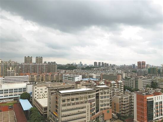 19日白天,台风逼近,江门市区的云层逐渐加厚,雨势增强 |