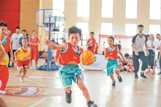 羊城晚报讯 记者梁正杰、通讯员喻欢摄影报道:拍球、运球、拦截、穿插、投篮……来自34所幼儿园的幼儿们身穿球衣在篮球场上玩得似模似样。近日,南海区西樵镇第五届幼儿篮球花会在听音湖实验学校体育馆举行总决赛,500名幼儿在篮球场上“炫”球技、秀英姿,“萌”翻观众。 在决赛场上,只见500多位萌娃,手拍着大大的篮球,身姿有模有样。据悉,幼儿篮球花会是西樵学前教育一年一度的盛事,也是西樵镇学前教育科学保教的一张亮丽名片。本届赛事共设立篮球操、大班自信之星技能游戏、大班3对3游戏篮球、女神3对3实战赛、大班篮球秀(录像赛)等多个项目。 34所幼儿园的萌娃个个化身篮球健将,小小的身影在球场中穿梭,一招一式都透出专业的架势。每投进一球都能引起现场热烈的掌声与呼喊,让现场的气氛燃至爆点。 西樵中心幼儿园的梁乐瑶参加了篮球操的比赛项目,家长张倩文早早便来到现场给孩子打气。“孩子自接触篮球后有了很大的变化,不仅锻炼了身体,还结识了一群志趣相投的伙伴,增强了团队协作意识、自信心。”张倩文边笑边说,孩子现在每天都离不开篮球,用实际行动展示女孩子也能“玩”转篮球。 萌娃李文正刚开始对篮球是抗拒的,现在却爱上打篮球,这离不开父母与老师的鼓励与支持。“希望他能坚持下去,感受篮球的魅力。”妈妈区艳芬说。 据悉,近几年来,西樵学前教育能紧跟国家的时代步伐,秉承“樵山教育·有为品质”内涵发展理念,推广、普及、发展“野蛮身体、强健体魄、文明精神”幼儿篮球特色课程。其中,西樵镇在2016年6月举行了第一届幼儿篮球花会,赢得了孩子的喜欢与家长的一致好评,在至今举办的五届赛事中,以“激情、合作、快乐、自信”为理念,借力篮球,打造出老师们、孩子们专属的篮球荣誉盛会,让孩子们学会合作,展示礼仪,增强自信,分享喜悦,玩出健康,玩出创意,健身健脑又健心。 西樵镇教育发展中心副主任张杏燕表示,赛事充分发扬“友谊第一,比赛第二”的体育精神,希望让“越运动、越健康”成为西樵幼教的一张富有西樵声音、西樵符号、西樵经验的健康活力名片。