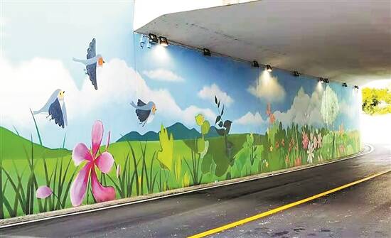文/图 梅尔 色彩斑斓的花丛、郁郁葱葱的景色,开车行经隧道,仿若置身梦幻的繁花世界,给人以舒适的行车体验。这道靓丽的“花海”风景线就在珠海市斗门区乾务镇。日前,乾务镇狮群村机场高速桥洞墙绘工程正式完工,在七彩墙绘的装点下,位于珠海机场高速下的乾务镇狮群村方向的桥洞隧道焕然一新,成为一道靓丽的“花海”风景线。 近日,笔者驱车来到乾务镇狮群村方向的机场高速桥洞隧道看到,原本平平无奇的隧道两壁已悄悄变了妆。千姿百态、栩栩如生的花卉绿植图案绘制在墙上,扮靓了朴素的桥洞,让人眼前一亮。 乾务镇委副书记张英艳说:“因为这里是乾务辖区一个重要的交通节点,有着展示城镇形象的窗口作用。在推进乡村振兴战略的过程中,我们尤其注重打造全域性节点的美化,希望通过墙绘的形式,为辖区内的一些道路景观添彩。” 据了解,乾务镇狮群村机场高速桥洞墙绘工程由珠海闲云艺术有限公司承建,墙绘总绘画长度约420米,总绘画面积达1126平方米。该工程于今年6月中旬进场施工,7月上旬完工。 珠海闲云艺术有限公司总经办主任刘燕兵说:“我们根据桥洞隧道周边的环境,结合乾务的乡村文化要素,设计了以花草树木为主的墙绘图案,形成与大自然融为一体的效果,让桥洞隧道整个面貌焕然一新。墙绘使用油漆和丙烯颜料绘制,可达到防水效果。” 如今,开车驶入全长190米的桥洞隧道,映入眼帘的是缤纷清爽的自然景观,蓝天、白云、草地、山丘,造型生动形象,令人赏心悦目。粉嫩的紫荆花,冶艳的三角梅,饱满的郁金香,俏丽的杜鹃……百花齐放,倩影婀娜。美轮美奂的墙绘,让昔日的灰墙“穿上新衣换新颜”,人们行车其中,仿若置身于通往繁花世界的梦幻通道,别有一番体验。 据悉,为进一步美化乡村景观、改善人居环境,接下来,乾务镇还将以墙绘形式在辖区村居内打造节点景观。张英艳表示:“下一步,我们还将在虎山村、南山村和新村等打造墙绘景观,进一步优化农村人居环境,提升乡风文明,推动乡村振兴建设。”