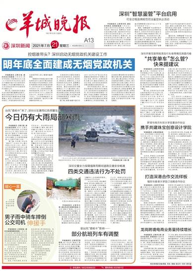 1957年10月1日创刊 深圳新闻 2021年7月21日 星期三 辛丑年六月十二 湾区新闻部主编/责编 文俏 / 美编 陈日升 / 校对 黄文波 报料热线:83