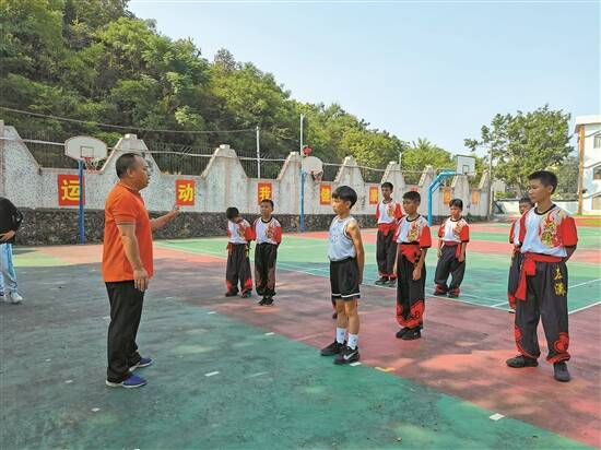 蔡景盛正在指导徒弟徒孙们练习顺德洪拳 |