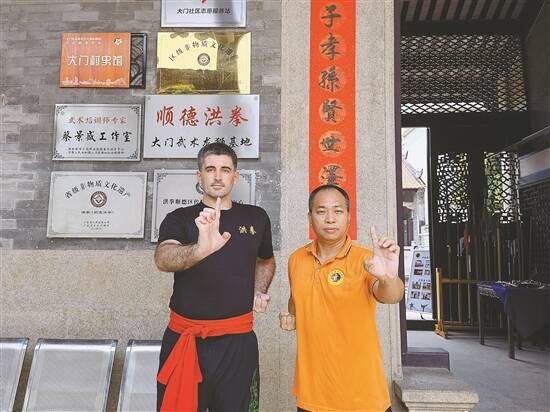 文/图 羊城晚报记者 曹月 “嘿!哈!”一大早,在顺德区龙江镇左滩小学,蔡景盛正在与徒弟徒孙们一起练习洪拳,现场示范技术要领,悉心教导徒弟们的动作和呼吸。 据悉,这是成立于2018年4月的左滩武术醒狮队,经过3年时间洗礼,已经成为一支较成熟的青少年醒狮队伍,并吸引了一批非左滩村户籍的青少年加入,至今狮队成员达35人以上。“以气催力,发声助威,一定要发声,因为这个拳发劲太猛了。”蔡景盛介绍道,顺德洪拳手法丰富,步势稳健,为醒狮、粤剧、龙虱、人龙舞等提供了武术基础,被誉为“诸艺之源”。 洪拳已有三百多年历史,是广东五大名拳“洪刘蔡李莫”之首。传承的套路主要有工字伏虎拳、虎鹤双形拳、铁线拳等“洪拳三宝”,还有五郎八卦棍、刀、枪、木人桩等相关器械。顺德洪拳主要为黄飞鸿、林世荣一脉。今年46岁的蔡景盛是黄飞鸿第四代传人,是顺德洪拳的传承人。蔡景盛从小跟随父亲学习洪拳,成年后,先后拜师黄飞鸿第四代传人何东成和第三代传人黄达生。蔡景盛将两位师父之所长融会贯通,拳艺日益精湛。自2007年开设拳馆授徒至今,收徒已过万人。一度式微的顺德洪拳也在蔡景盛三十多年不辍的传承下重新兴旺起来。2018年,顺德洪拳成功入选广东省第七批省级非物质文化遗产名录。 将传承顺德洪拳作为使命 谈到小时候为什么喜欢学习洪拳,蔡景盛打趣说道,“我练功夫是为了防身健体,就是发自内心地喜欢练习。”蔡景盛幼时常常被大他几岁的孩子欺负,这让他很失落。蔡景盛父亲告诉他:“练好功夫就不会有人敢欺负你了。”这句话,蔡景盛直到现在仍记忆犹新,也因此激发了他学习功夫的热情,开始洪拳生涯。 扎马步、站桩,年少的蔡景盛对洪拳表现出非一般的痴迷,经常缠着父亲教自己武功,进步非常快。“很辛苦,也经常受伤,擦破皮肉也是常有的事,不过因为热爱,一直坚持了下来。”成年之后,蔡景盛先后拜师黄飞鸿第四代传人何东成、第三代传人黄达生,2020年入选为佛山市第六批市级非物质文化遗产项目代表性传承人。 顺德民间习武风气颇盛,但曾有一段时间,洪拳却出现了青黄不接的情况。“甚至连一家正式的洪拳武馆都没有。”蔡景盛感慨道。看着别的拳术门派宣传得这么沸沸扬扬,而洪拳却无声无息,他觉得这么下去不是办法。 2007年,蔡景盛把自己家的车库改造成了洪拳武馆。在其师父们的帮助下,成立了顺德第一家洪拳训练基地。“当时只有三十多人,都是义务教的。”蔡景盛称,由于来学习洪拳的人不多,为了发扬洪拳,他只能义务教学。而这一教,就是七年。 蔡景盛并没有因此气馁,而是凭借毅力把这份艰巨的传承工作扛了下来。为了打响自己的品牌,让更多人知道顺德洪拳,蔡景盛的身影开始出现在省内外各种武术大赛的赛场上。在第八届香港国际武术节上,首次参赛的蔡景盛便勇夺两枚铜牌。随后他在广东省传统武术项目锦标赛、广东省洪拳精英赛上均获得一等奖的骄人成绩。 2012年,蔡景盛凭借一套刚柔并济的“虎鹤双形拳”获得第五届世界传统武术锦标赛男子南拳比赛项目的冠军,在顺德一举成名。随着名气增大,来找蔡景盛拜师学艺的人越来越多。“只要能吃苦,有毅力、有天赋,我就倾囊相授。”蔡景盛表示,只要能把洪拳发扬出去,就满足了。 洪拳龟苓膏助力洪拳传承 “一开始父母也都很支持,但后来他们也开始建议我去找一份正经工作养家糊口。”由于生活压力变大,家人从一开始的支持变成反对,但妻子的鼓励让蔡景盛有了坚持下来的动力。 “妻子的龟苓膏店给了我很大支持,能让我一直坚持传承顺德洪拳。”原来,妻子吕秀萍是顺德洪拳龟苓膏传承人。“当初与妻子结识也是因为洪拳,她对龟苓膏感兴趣,便开始学习洪拳龟苓膏制作技艺。”其实,顺德洪拳龟苓膏也是洪拳文化一部分。2018年,在吕秀萍的坚持下,顺德区传统洪拳龟苓膏店开张。洪拳龟苓膏制作技艺于2020年被列入顺德区第八批非物质文化遗产项目。同时,妻子的龟苓膏店也成了蔡景盛坚强的后盾,让他可以心无旁骛地沉浸在洪拳世界里。 “洪拳龟苓膏的最大特点就是回甘不苦,虽然制作技艺比较复杂,用到的材料也很多,但做出来的龟苓膏有很大的养生作用。清热解毒、滋阴润燥、通便祛湿、对夜眠多梦、烟酒过多、虚火烦躁等均有功效。”吕秀萍介绍道,洪拳龟苓膏制作技艺主要由石金钱龟板、灵芝、土茯苓、新鲜石斛、新鲜生地,加入其他中药等熬制而成。一直以来,吕秀萍都很支持丈夫蔡景盛传承顺德洪拳,“觉得这是一项伟大的传承事业。如果我们不去做这件事,那以后这个传统文化有可能就会消失。”洪拳龟苓膏不仅是功夫与美食的结合,也是非遗文化的传承。吕秀萍说道,未来希望更多年轻人能来学习顺德洪拳,品尝洪拳龟苓膏,将传统文化宣传出去。 向海外讲好顺德洪拳故事 顺德洪拳不仅传承非遗文化,更是让中国文化走出去的一个窗口。自2007年开设拳馆授徒以来,蔡景盛至今收徒过万人,覆盖珠三角及周边城市,不少外国人也慕名前来向他学拳。美国人马克就是其中一位。马克选择来顺德学习洪拳,是因为曾经在香港电影里看到过,便对洪拳产生了兴趣,而顺德洪拳最著名的就是蔡景盛师父,所以他在2019年专程从美国来到顺德,拜师蔡景盛。 “我中意中国,我喜欢顺德洪拳!”来到大良已经两年多时间,马
