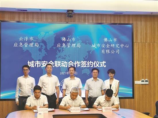 羊城晚报讯 记者薛仁政、梁正杰摄影报道:8月4日下午,佛山、云浮两市城市安全联动合作框架协议签约仪式在佛山市城市安全运行监测中心举行,这标志着对区域性城市群安全共建共治共享的探索进入了一个新的阶段。 一串串数字、一段段视频在佛山市城市安全运行监测中心的蓝色大屏幕上依次呈现,展示着佛山市已经建成的城市安全综合运行系统的强大功能。该系统具有全景呈现城市安全态势、精准预报预警安全风险、高效科学处置突发事件、及时复盘提升治理效能的功能,可以快速实现对城市安全运行态势的7×24小时值班值守、监测预警和综合研判,定期为各级各部门提供专题分析报告,最大程度降低城市安全运营成本。 随后,佛山市应急管理局局长魏钰、云浮市应急管理局局长赖鉴铭、佛山市城市安全研究中心有限公司副总经理谭卓波共同签署《城市安全联动合作框架协议》,三方将秉持开放共享、合作共赢的理念,在城市安全风险评估、监测预警、应急联动和区域应急协同方面进行广泛深入密切的合作,依托佛山市城市安全研究中心的科研人才、专家力量、技术理论优势,按照“技术复用、资源共享、机制联动、集约共建”的原则,共享佛山市“一网感知态势、一网纵观全局、一网风险研判、一网指挥调度、一网协同共治”的智慧安全城市建设成果,积极创新城市安全管理模式,共同推动佛山、云浮两地城市安全治理向更高水平发展。 目前,佛山市已先后与珠海市、肇庆市、云浮市签订了城市安全联动合作协议,区域性的城市群安全联动合作机制逐渐成熟,标志着对区域性城市群安全共建共治共享的探索进入了一个新的阶段。