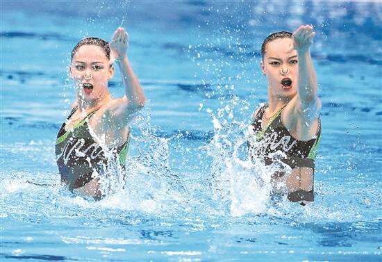黄雪辰和孙文雁夺得花样游泳亚军 羊城晚报特派东京记者 汤铭明 摄 |