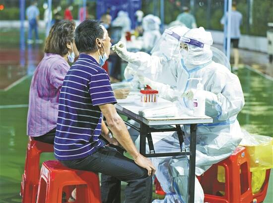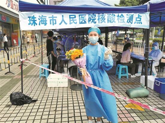 文/图 羊城晚报记者 郑达 杨楚滢 8月4日,天还没亮,一顶顶帐篷和一排排铁马就在迎宾南路附近“长”了出来。珠海的迎宾南路不复往日的喧嚣,长长的铁马将各个路口封锁成了一个个四四方方的“豆腐块”,“豆腐块”外围站着一个个神情紧张的工作人员,内部则鲜有人走动。 由于8月3日珠海市接报两名澳门居民核酸检测阳性,珠澳协同紧急开展相关调查和处置。8月4日,珠海市新型冠状病毒肺炎疫情防控指挥部发出通告,将香洲区拱北街道全区域作为警戒区域,拱北街道昌盛路以北、水湾路以西、粤海东路以南、桂华南路以东划定为封控区域,迎宾社区康之源生鲜超市等多地采取封闭管理。 核酸检测工作由医务人员轮班顶上,而刚刚从珠海吉大街道封控区撤下的工作人员还没来得及休息,就奔赴拱北,他们“披星”作战,守护市民平安。 高效:三个多小时完成封控 拱北街道党工委委员谢万军声音有些沙哑,从8月4日凌晨3时接到通知后,他一刻没有闲下来过。“核酸检测忙到凌晨,接到通知后就马不停蹄开始行动,早上6时,我们就完成了全部的封控。”谢万军说,“这次也多亏借鉴了吉大封控区的经验,整体的布置很顺利”。 记者在封控区附近走访时看到,基本上每隔10米就有一名工作人员进行看守,部分缺乏“铁马”的区域则用警戒线代替。 谢万军介绍,在封控区内,共有1900多名工作人员和志愿者分成8组按三班制进行工作。“目前封控区内人员情绪都比较平稳,而最大的困难则是要面对封控区内人员的不同诉求。我们目前正在筹备统计封闭区内人员的需求,会送一些物资进到封控区。我们也会收集一些困难向指挥部反映,让指挥部进行协调。”谢万军说,“接到通知后,全部人员马上行动到位,各项工作有序开展。大家都很辛苦。” 许锐是夏湾社区党委书记,身上的担子很重。“3日晚上我还在负责社区的核酸检测,一直忙到凌晨3时,接到通知后就赶紧过来封控区了。”许锐说,他负责的区域是口岸广场一带,“区域靠近车站,还有不少酒店,人流量很大,我们要去协调、管控和劝导。” 有序:新一轮全员核酸检测启动 “进入通道前,先打开粤康码。测完体温后,再打开‘粤核酸4’检测码。”采样指引再次从“大声公”传出,在珠海市各个街道、社区响起。8月3日晚上8时,珠海市新一轮全员核酸检测启动。 “我们时刻都保持战时状态,一接到任务就能火速集结出发。”当晚8时20分,在珠海市青少年妇女儿童活动中心圆形广场核酸检测采样点,带队组长、中大五院外科护士长谢敏仪说。 吉莲新村小公园也支起了铁马和帐篷,市民绕着小公园排了小半圈。吉莲社区工作人员告诉记者,“3日晚上人最多,采了2500多份。从以往的经验来看,这里一天能采4000份”。 记者在现场看到,一位负责扫码登记的工作人员脱下湿透了的上衣,拧出水,立马抖开穿上,随即套上隔离衣再次投入工作。 “听说这里有核酸检测点,就自发地过来了。”市民唐先生赶在上班之前来完成核酸检测。“做了那么多次核酸,已经没有什么感觉了,主要是珠海市在防疫这方面反应很迅速,我们积极支持。” “我一点都不怕,我之前在学校都做过了。”一位小朋友刚刚完成核酸采样后说。 暖心:市民自发送水 医护人员“比心” 8月4日11时,扬名广场核酸采样点排队等候的市民不多,在志愿者的指引下,全程不到10分钟就能完成检测。据记者了解,该采样点由中山大学附属第五医院医护人员负责采样,社区负责场地布置和配送防疫物资,志愿者协助维持秩序,分工明确,共同保障全员核酸检测顺利进行。 中大五院手术麻醉医学部护长孙玉勤说:“尽管休息时间比较短,但平时也比辛苦,早已练就了基本功。” 由于天气炎热,医护人员每4小时轮一次班,而每班至少需要6名成员。“现在我们开了4张台,两名医护人员协助帮忙。下午6时至晚上10时是高峰期,我们会考虑加派人手。”孙玉勤会根据现场情况来调整人员配置。除此之外,她还需协调手术室本职工作的人员安排。 让孙玉勤最为感动的是,每一次紧急调配,她的同事们都非常积极配合。“每一次任务都很紧急,立马要筹集10多个人到位。他们刚刚从手术台下来就主动来报名加班,我真的很感动。” 经历了前两轮全员核酸检测,医护人员和街道社区、志愿者之间的配合更为流畅和协调。孙玉勤说:“彼此的配合更默契了。” 每一次大规模核酸检测都有市民自发来送水、饮料、西瓜、糖水等清凉饮品、食品。8月4日上午,通大百货采样点的医护人员黄少敏收到市民朋友送来的花束,感动地笑了:“上次艳阳高照,我们被汗水浸湿,这次下着雨,我们又湿了!但看到市民朋友都很配合,心里一直暖暖的。”送花的市民表示,“这两次全市大规模采核酸,医护人员们都辛苦了,又是日晒又是雨淋。非常感谢医护人员!”