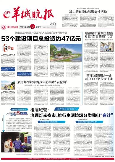 1957年10月1日创刊 佛山新闻 2021年8月6日 星期五 辛丑年六月廿八 湾区新闻部主编/责编 李斯睿 / 美编 陈日升 / 校对 黄小慧 手机报料:18